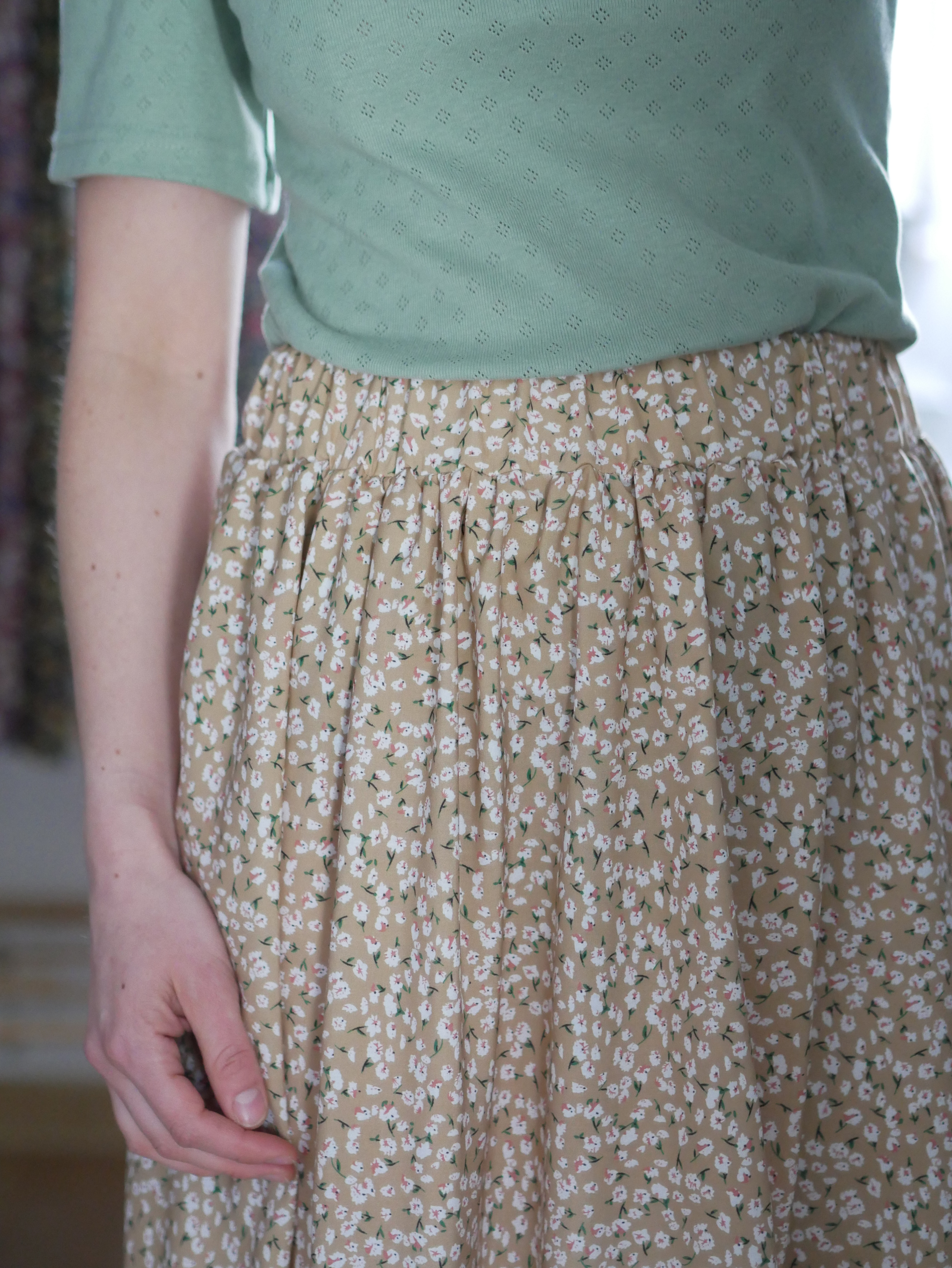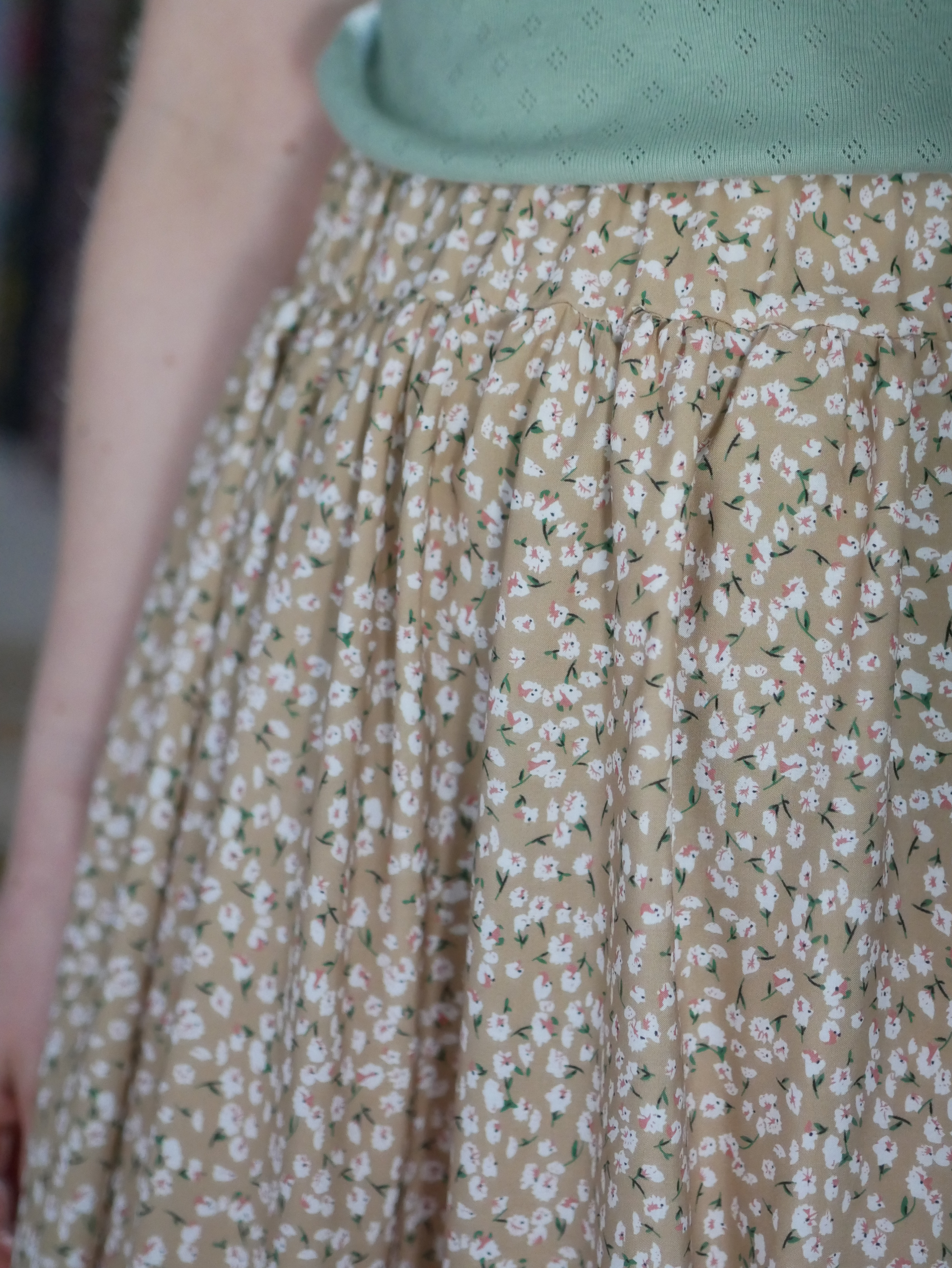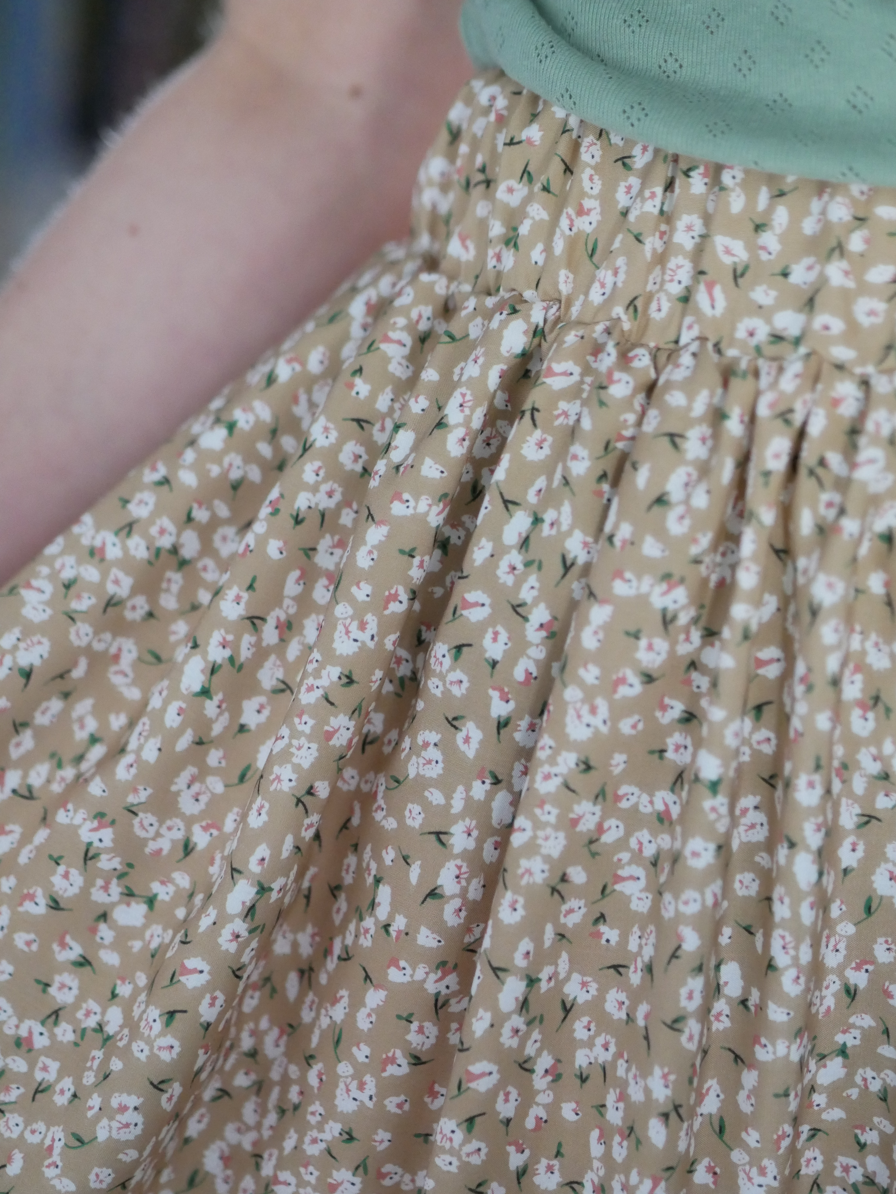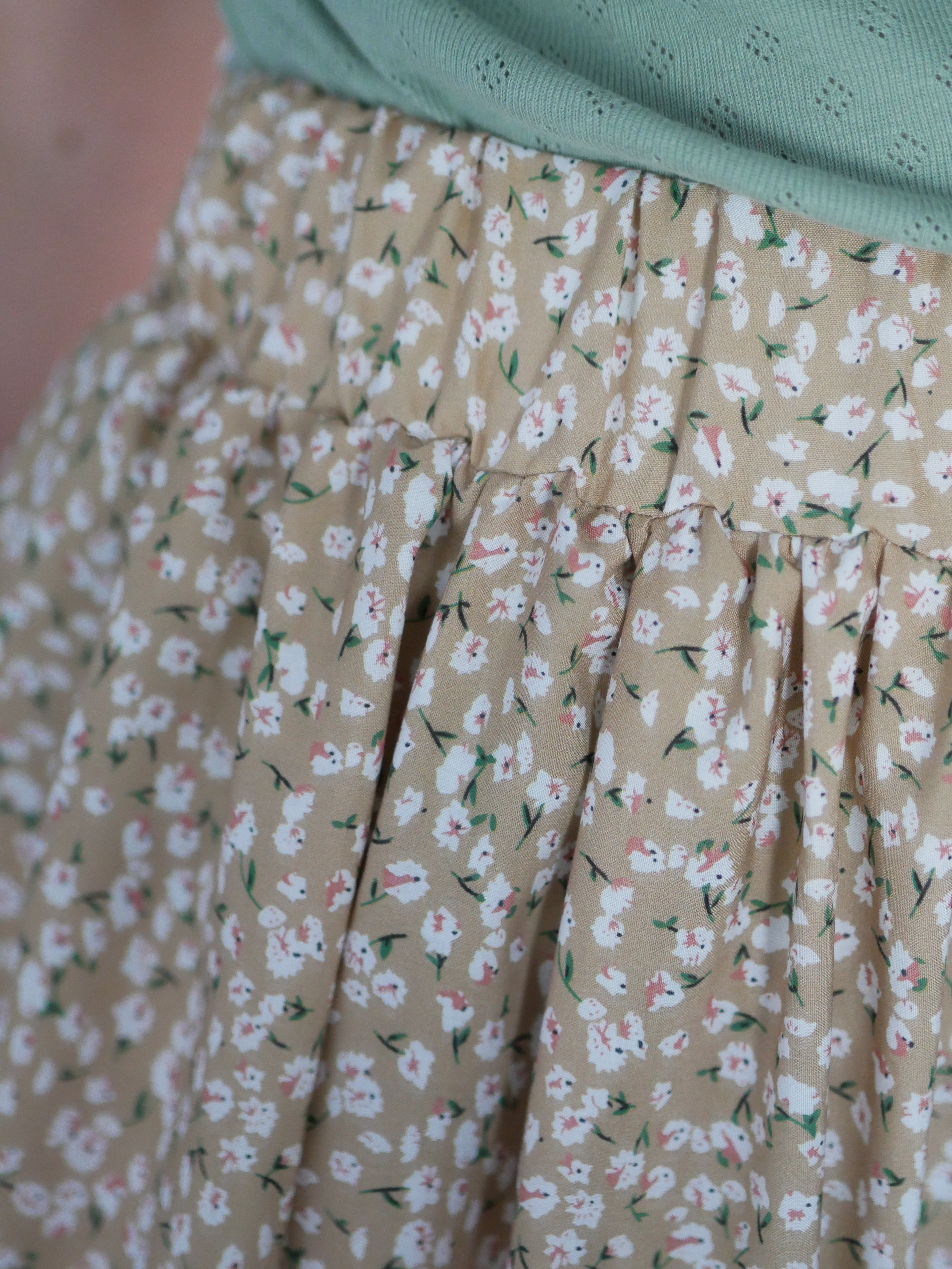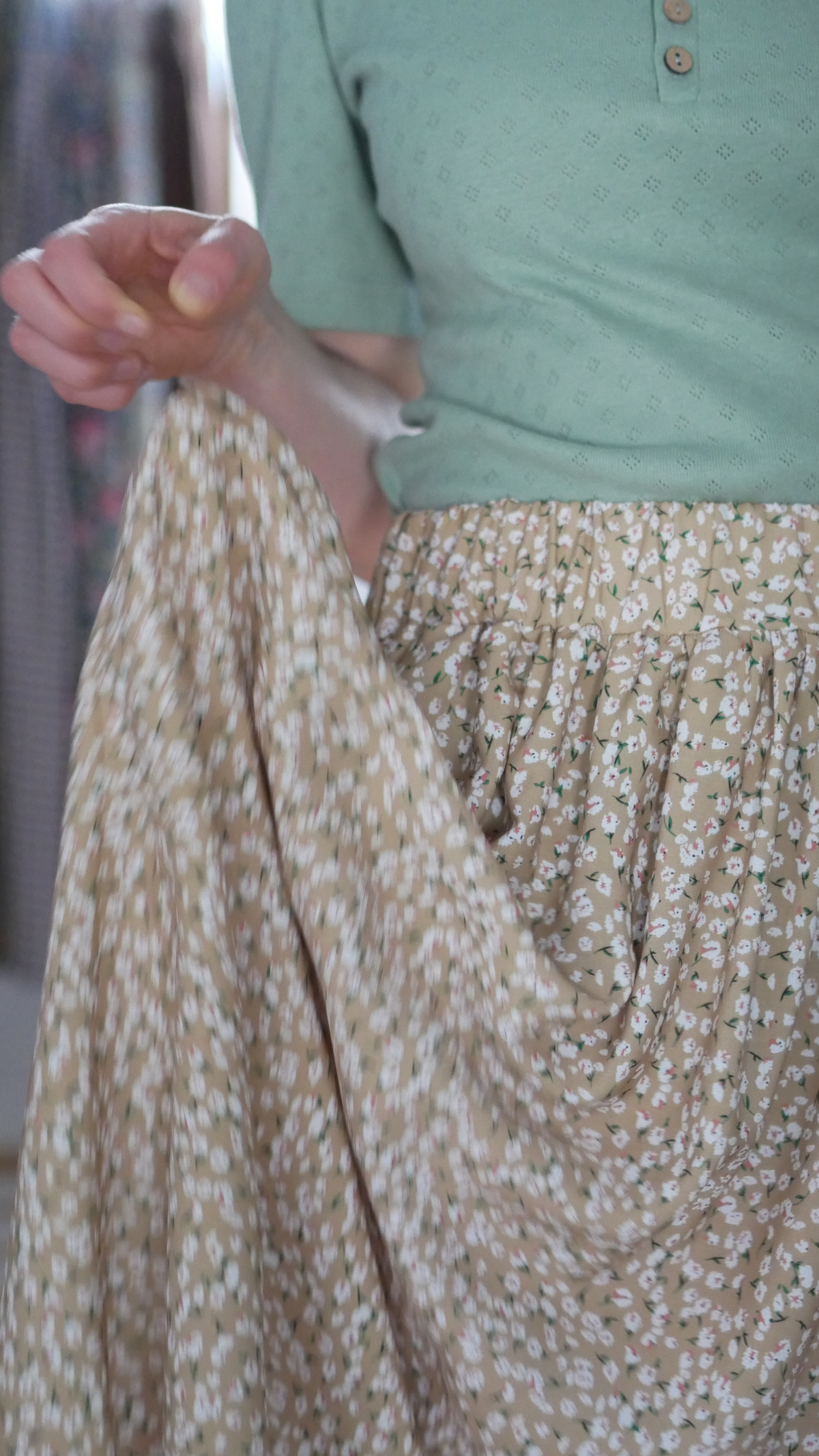 Spódnica Mechtylda oliwkowa w drobne kwiatuszki.