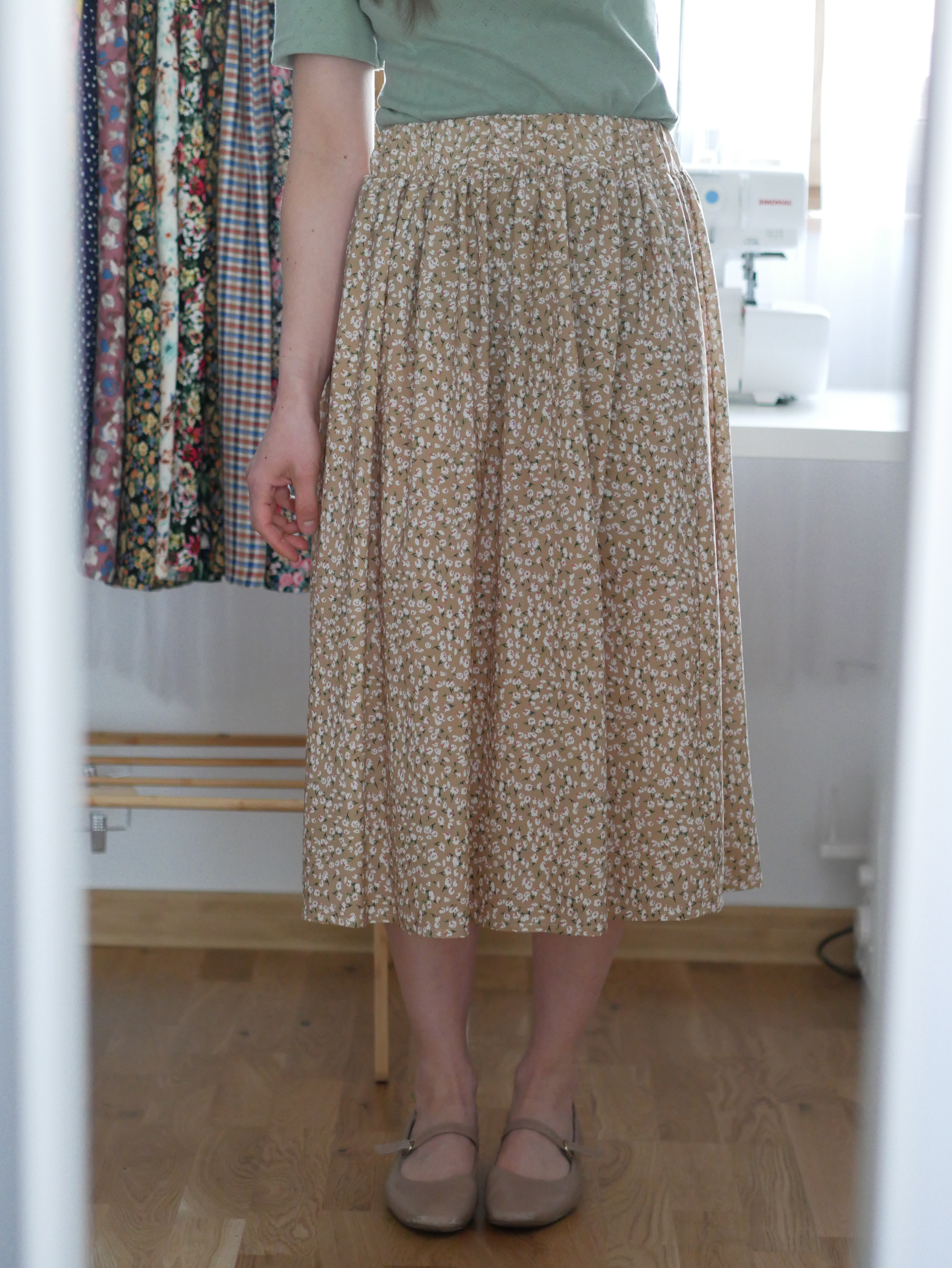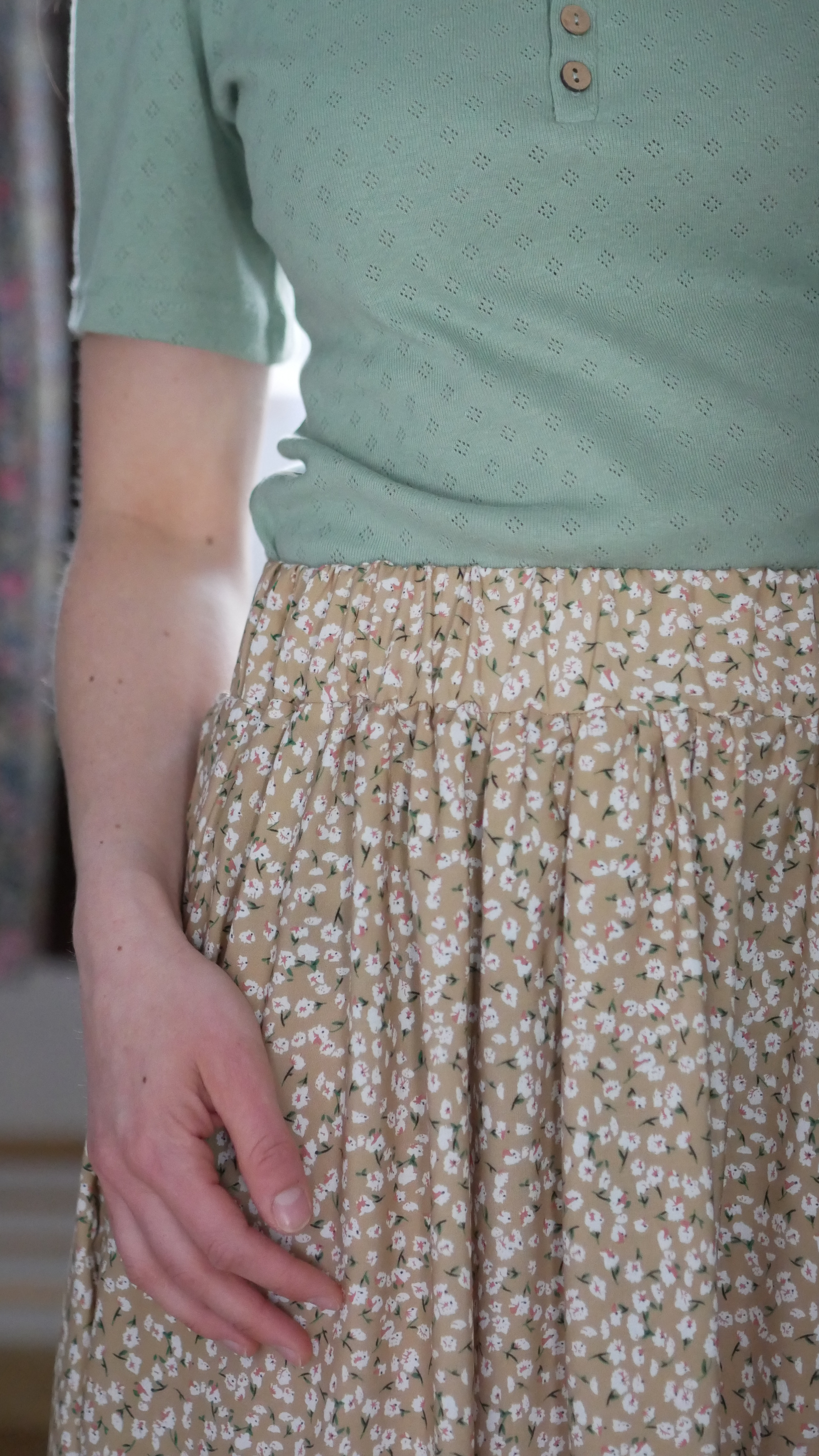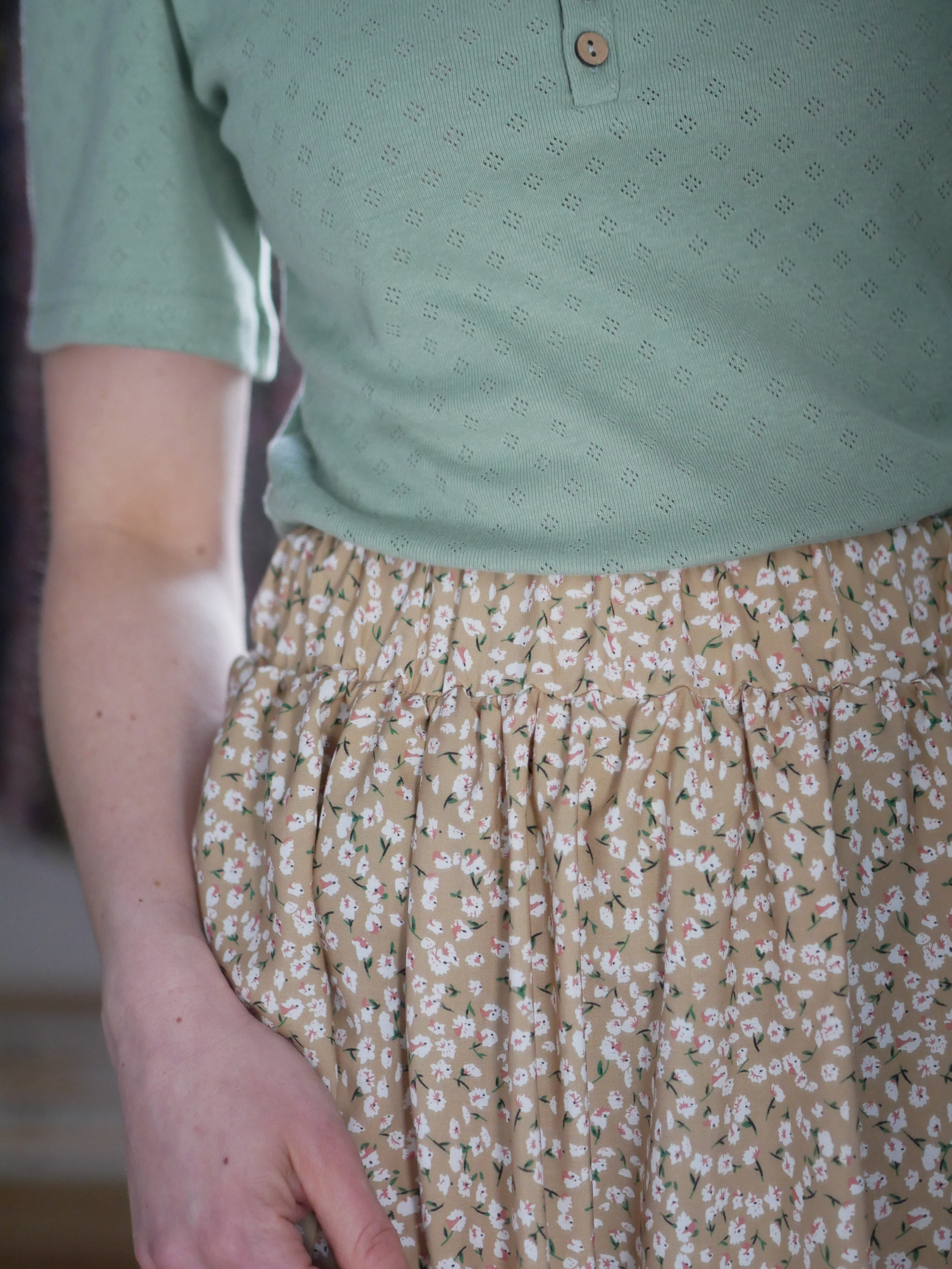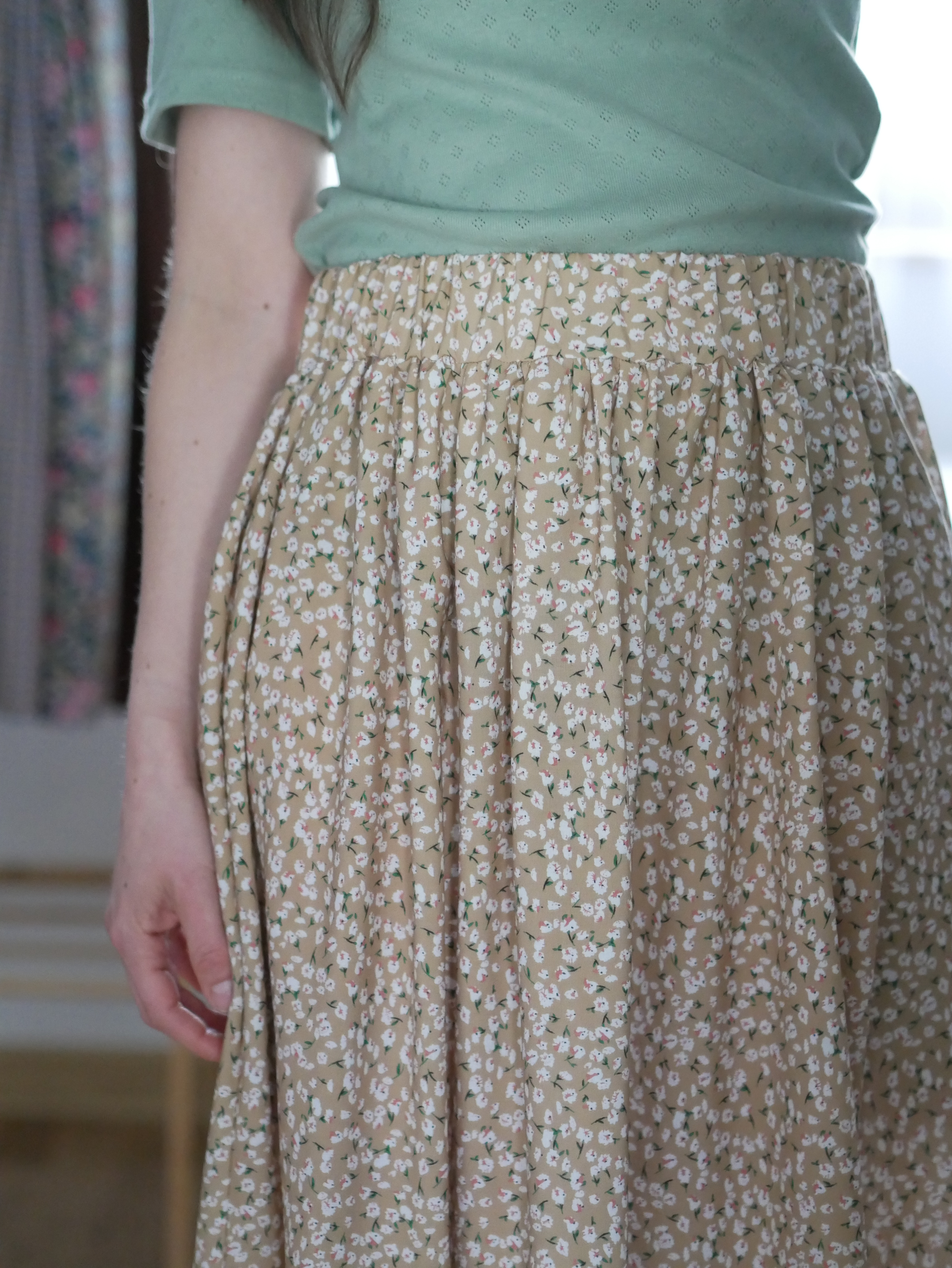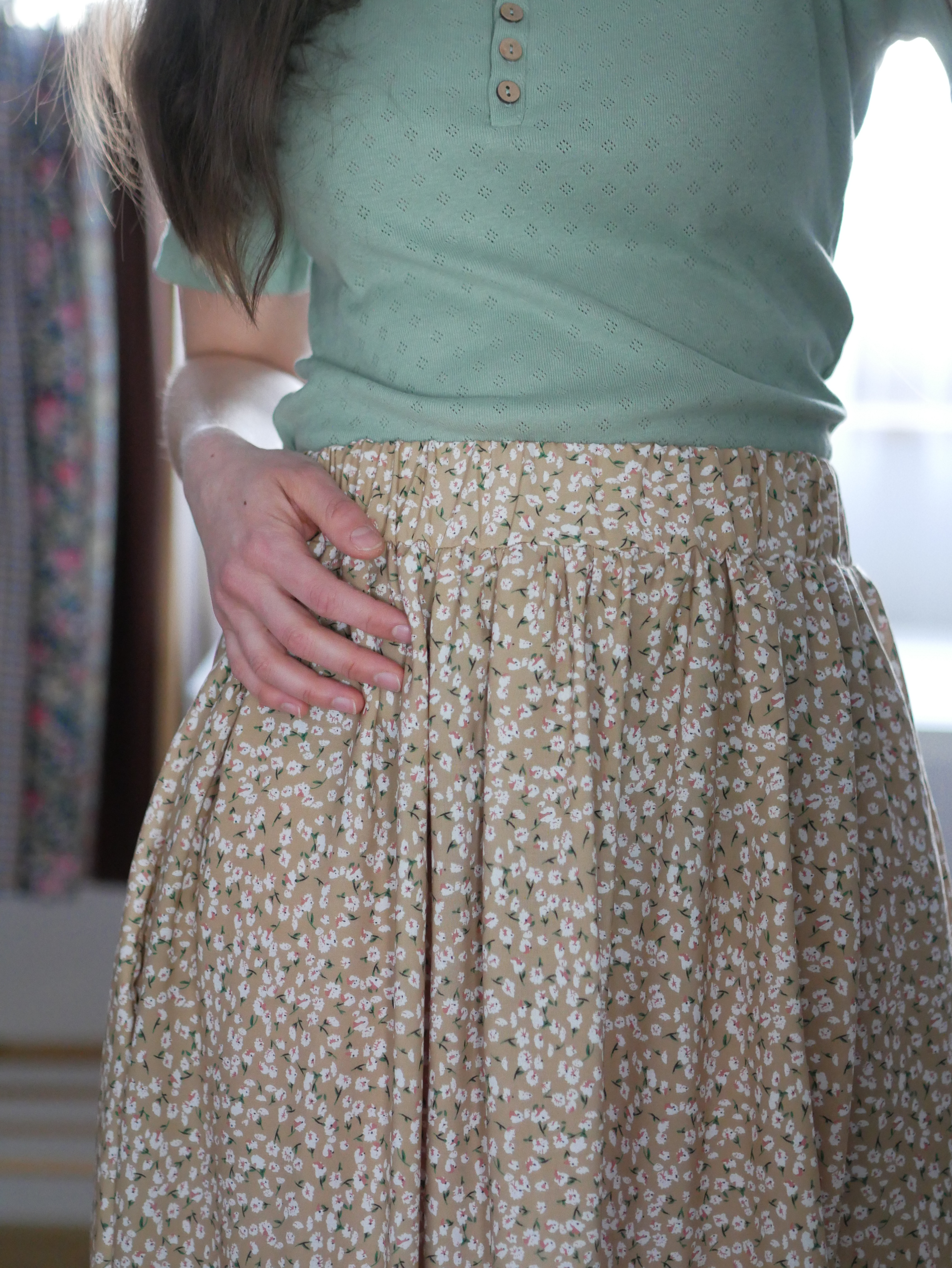 Spódnica Mechtylda oliwkowa w drobne kwiatuszki.
