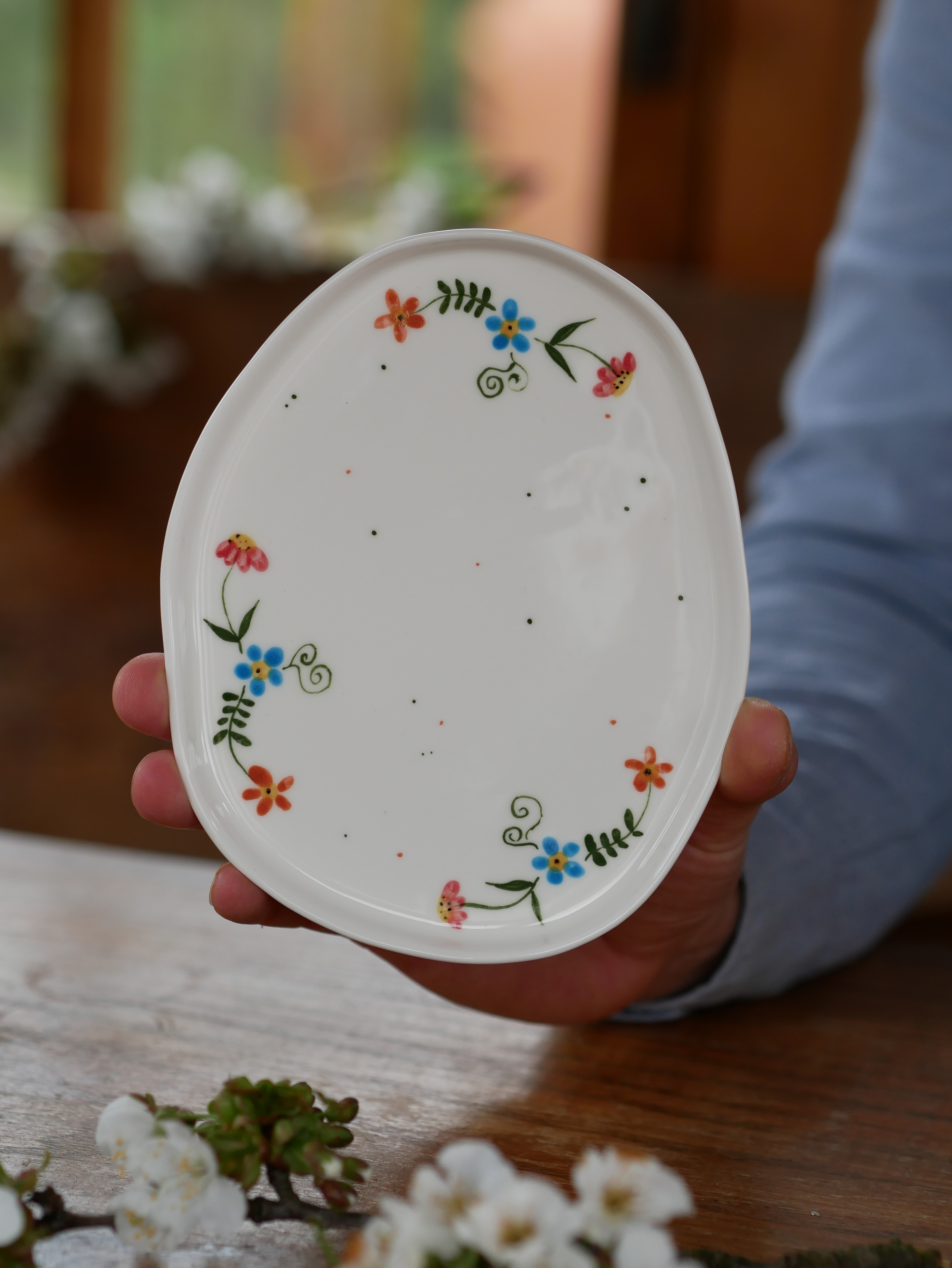 Talerzyk na drobiazgi biały w urocze niezapominajki - idealny na biżuterię!
