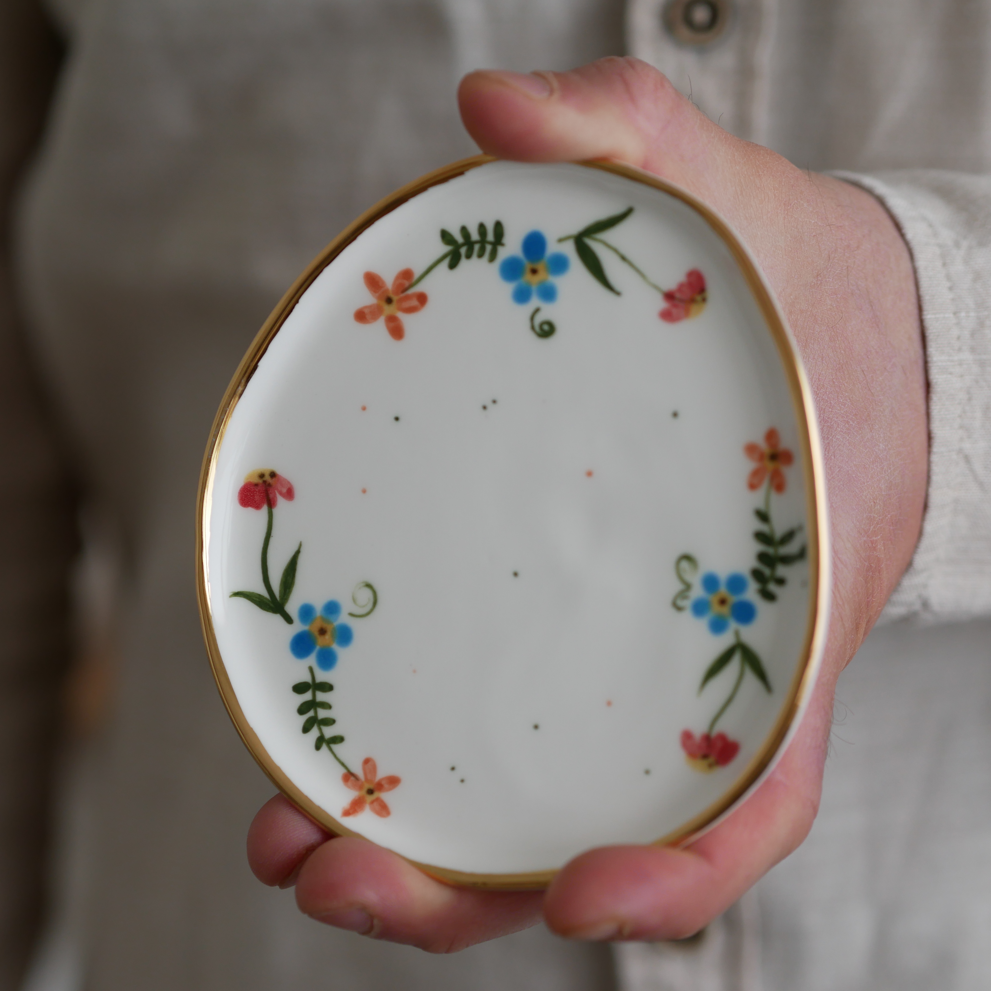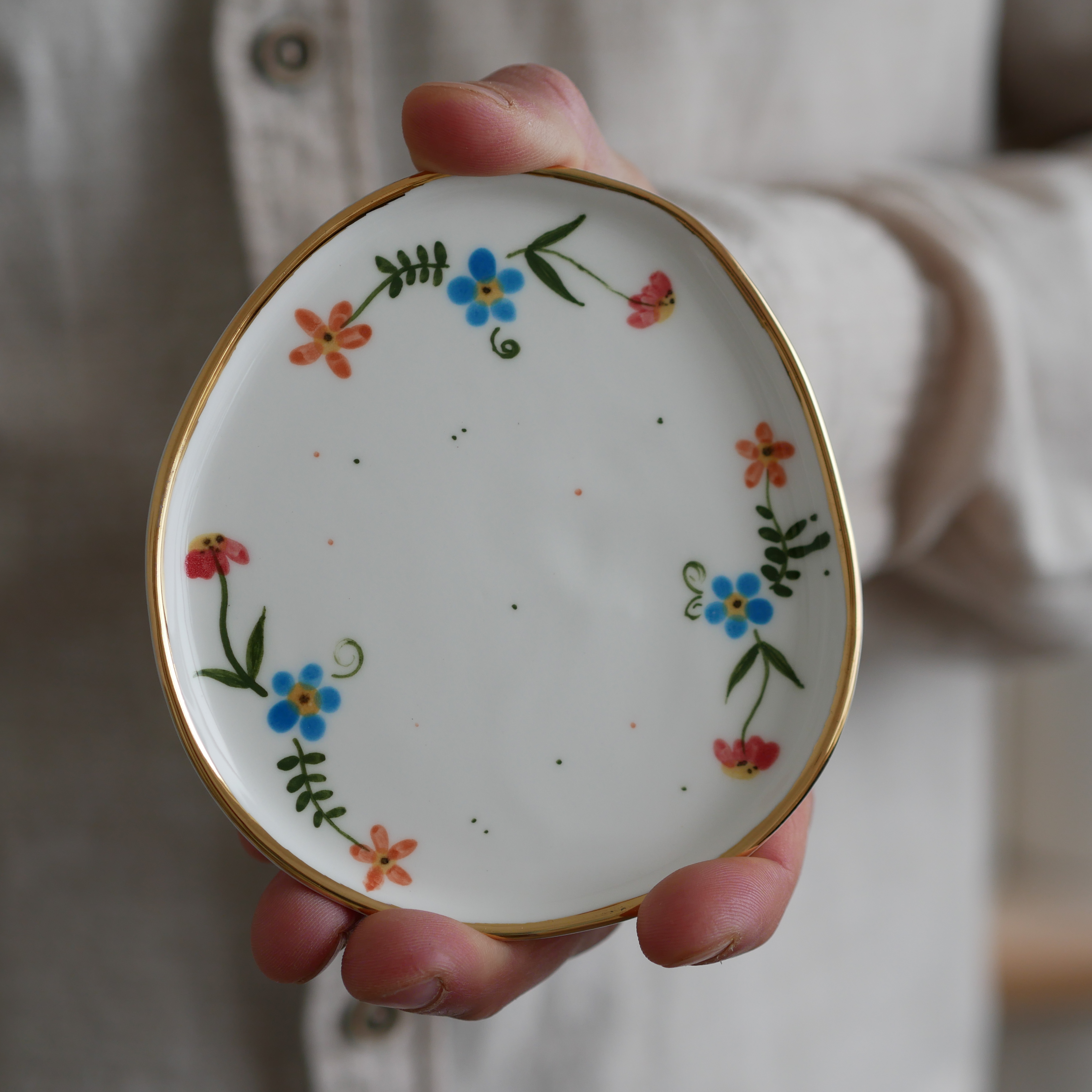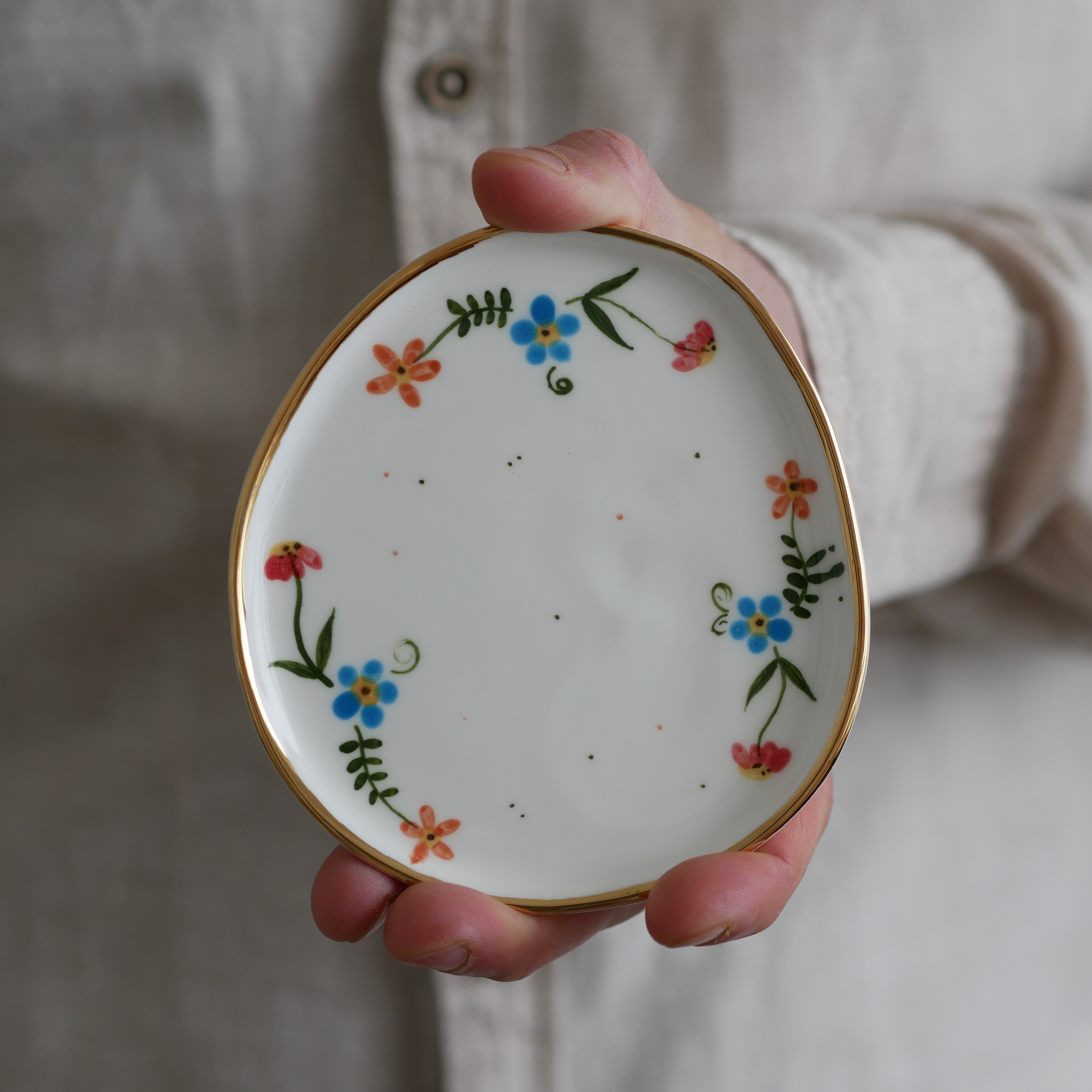 Talerzyk na drobiazgi 9x11,5cm (S) wiejska opowieść ze złotym rantem