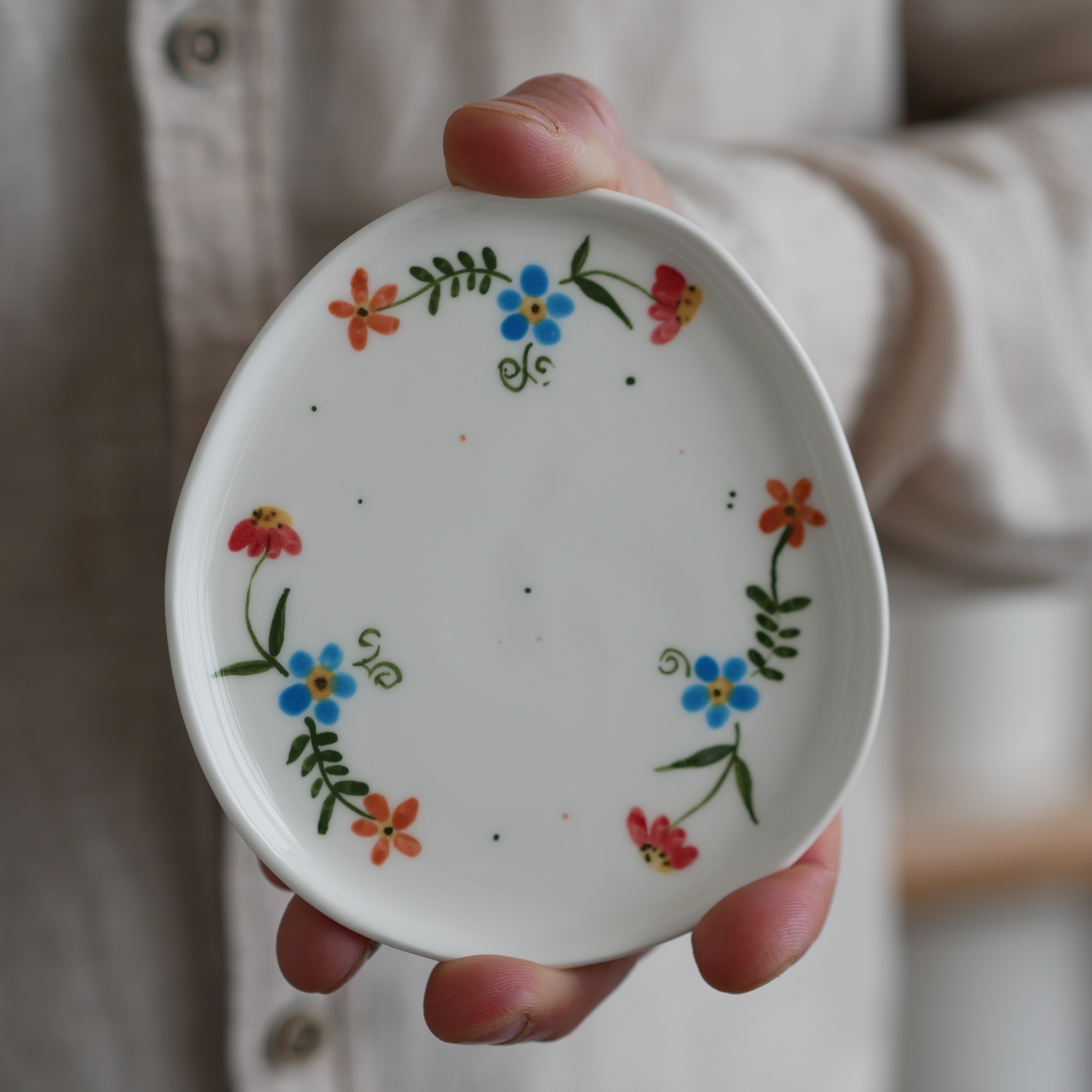 Talerzyk na drobiazgi biały w urocze niezapominajki - idealny na biżuterię!