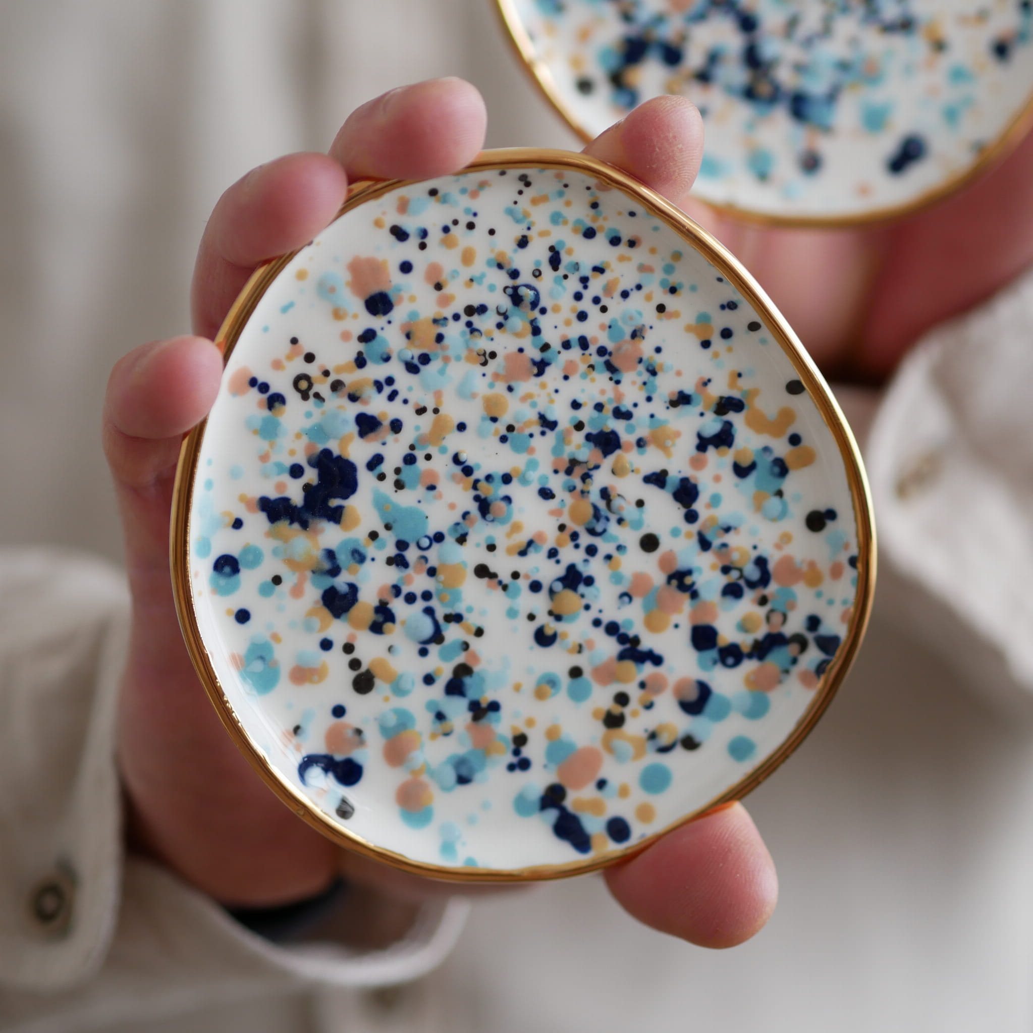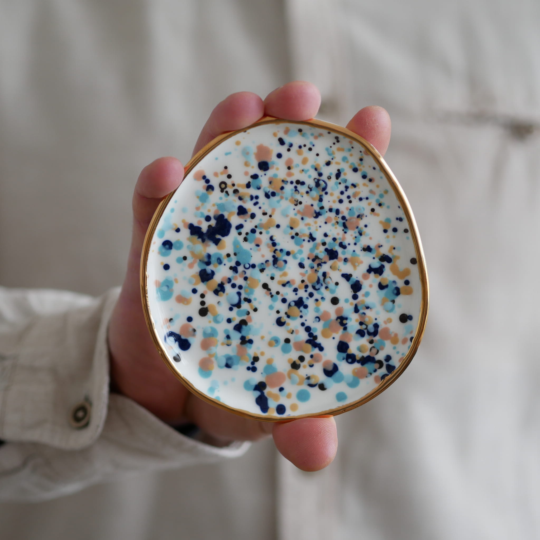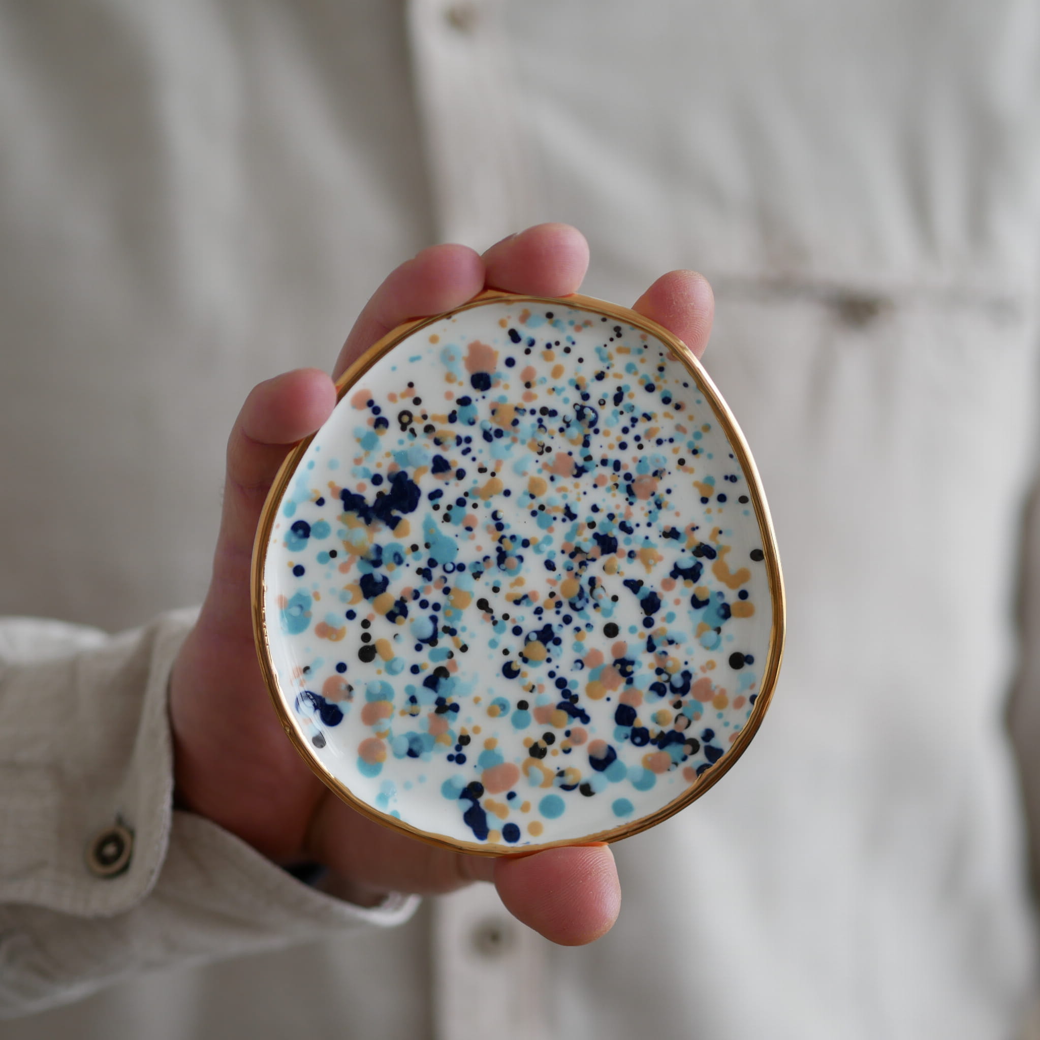 Talerzyk na drobiazgi colorful ze złotym rantem 11x9cm (S)