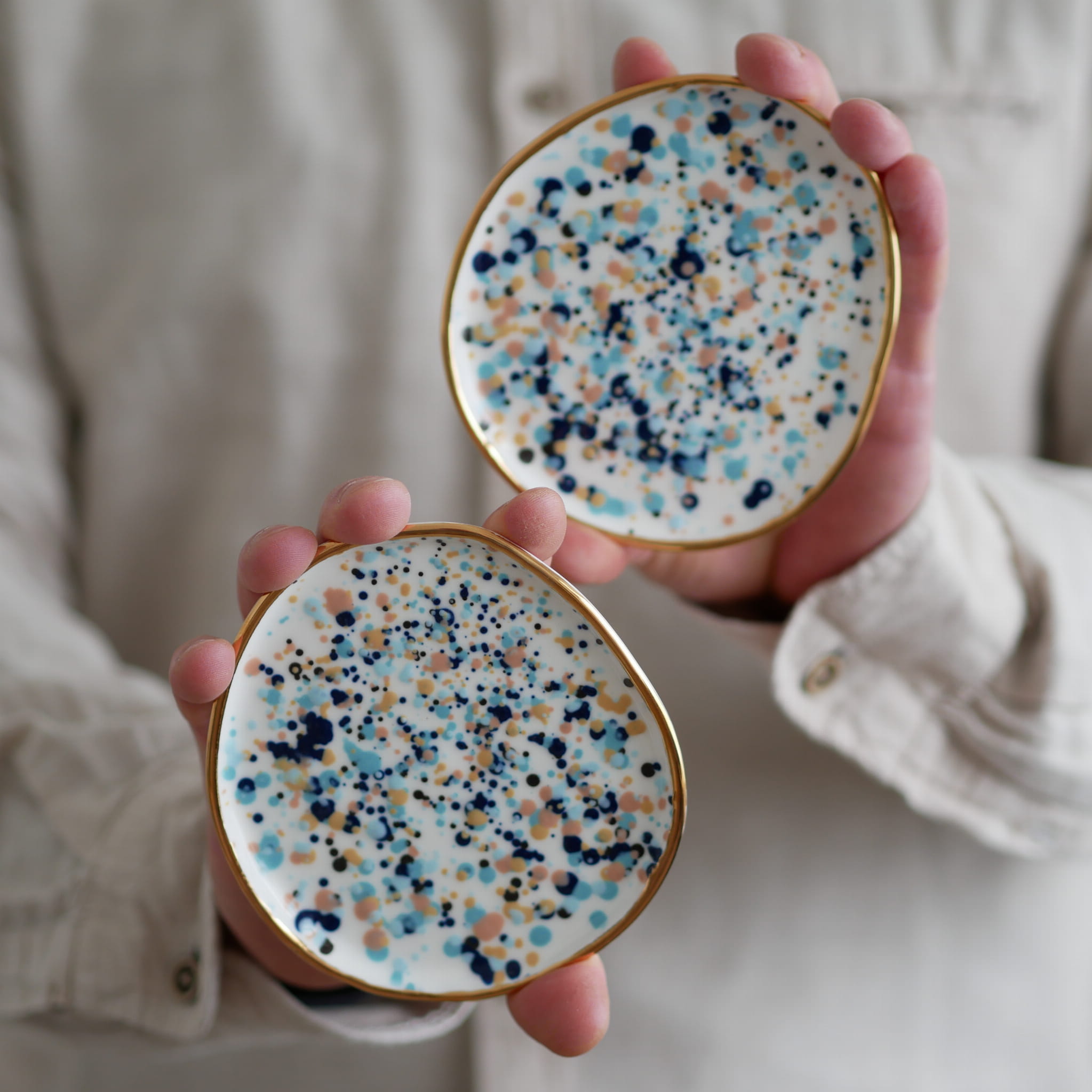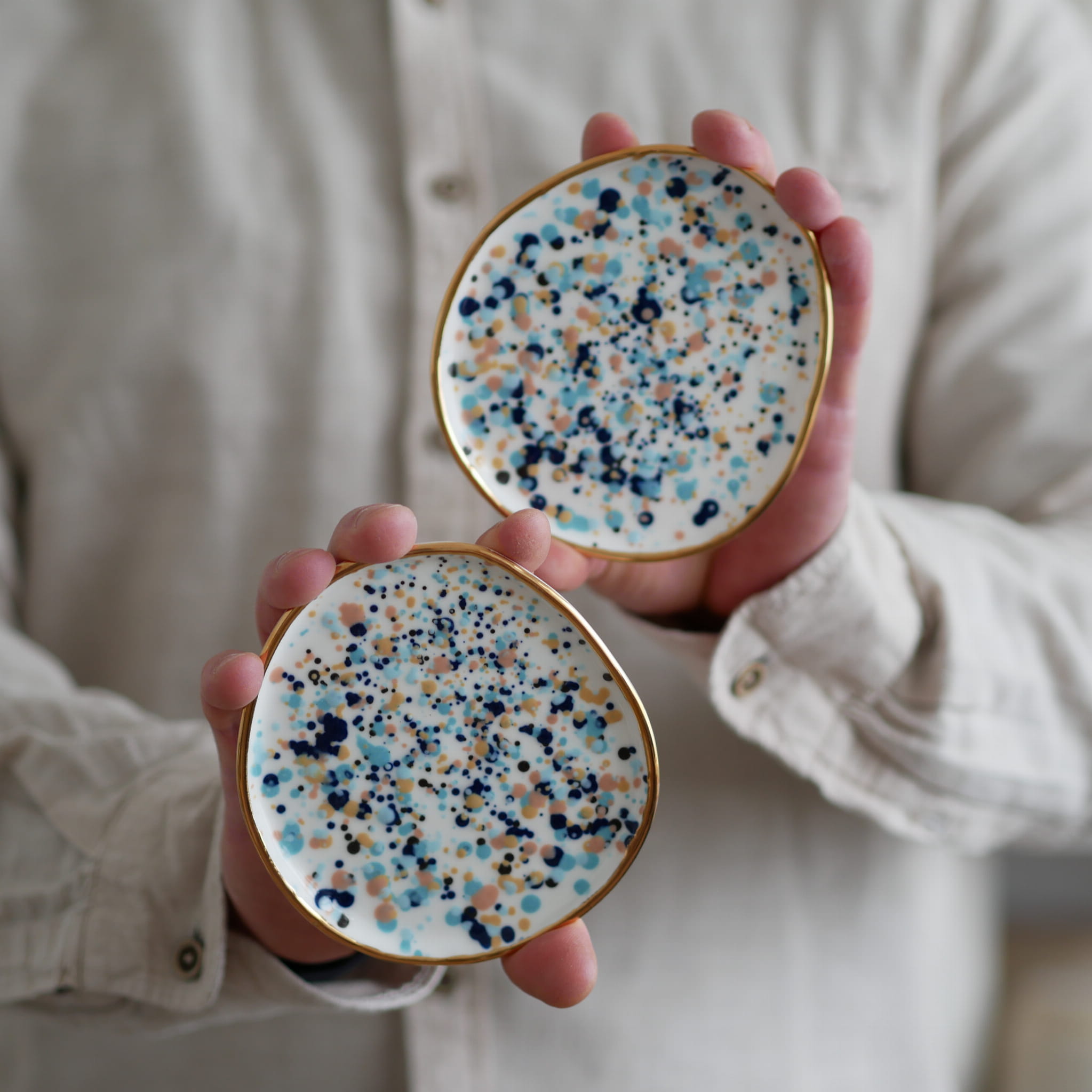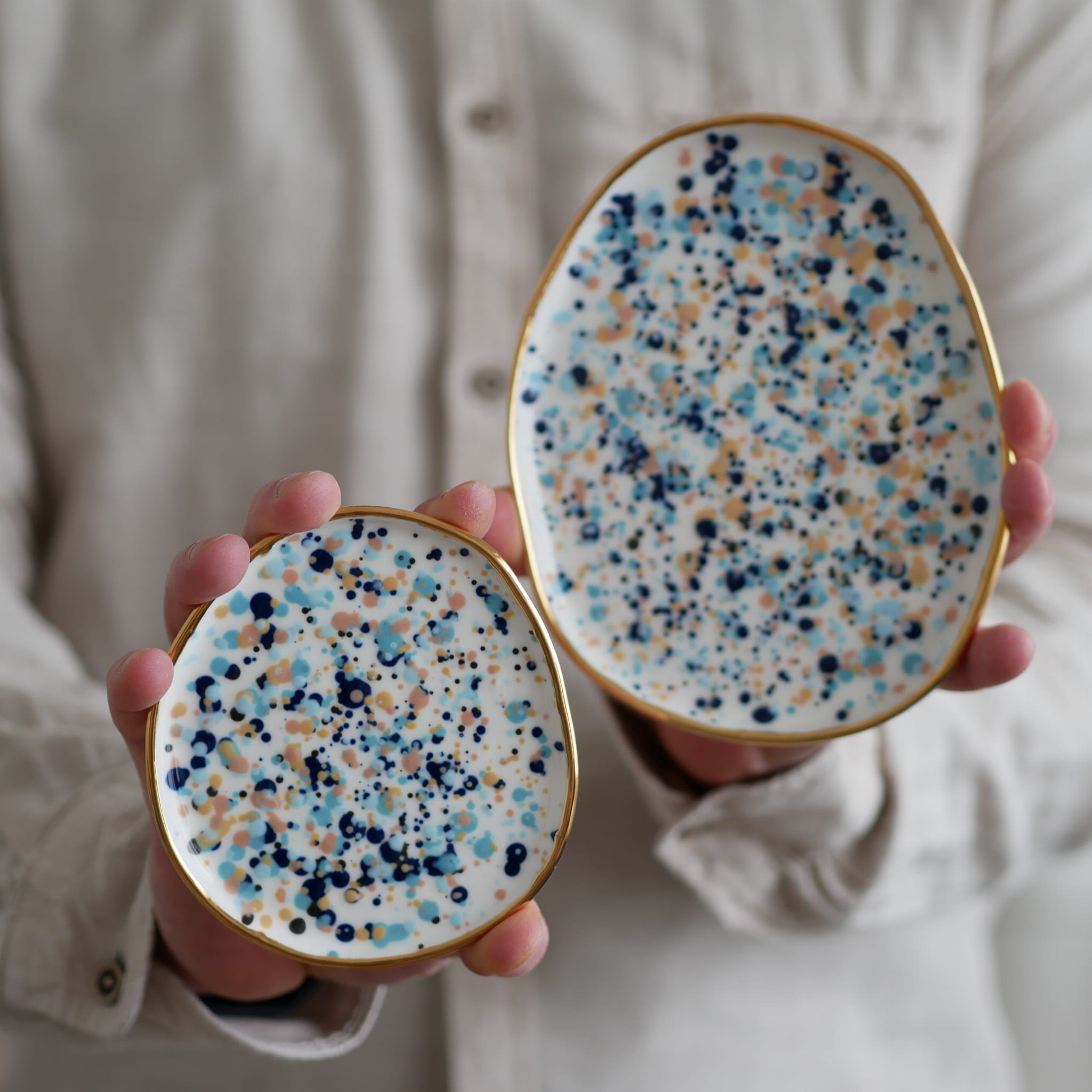 Talerzyk na drobiazgi colorful ze złotym rantem 11x9cm (S)