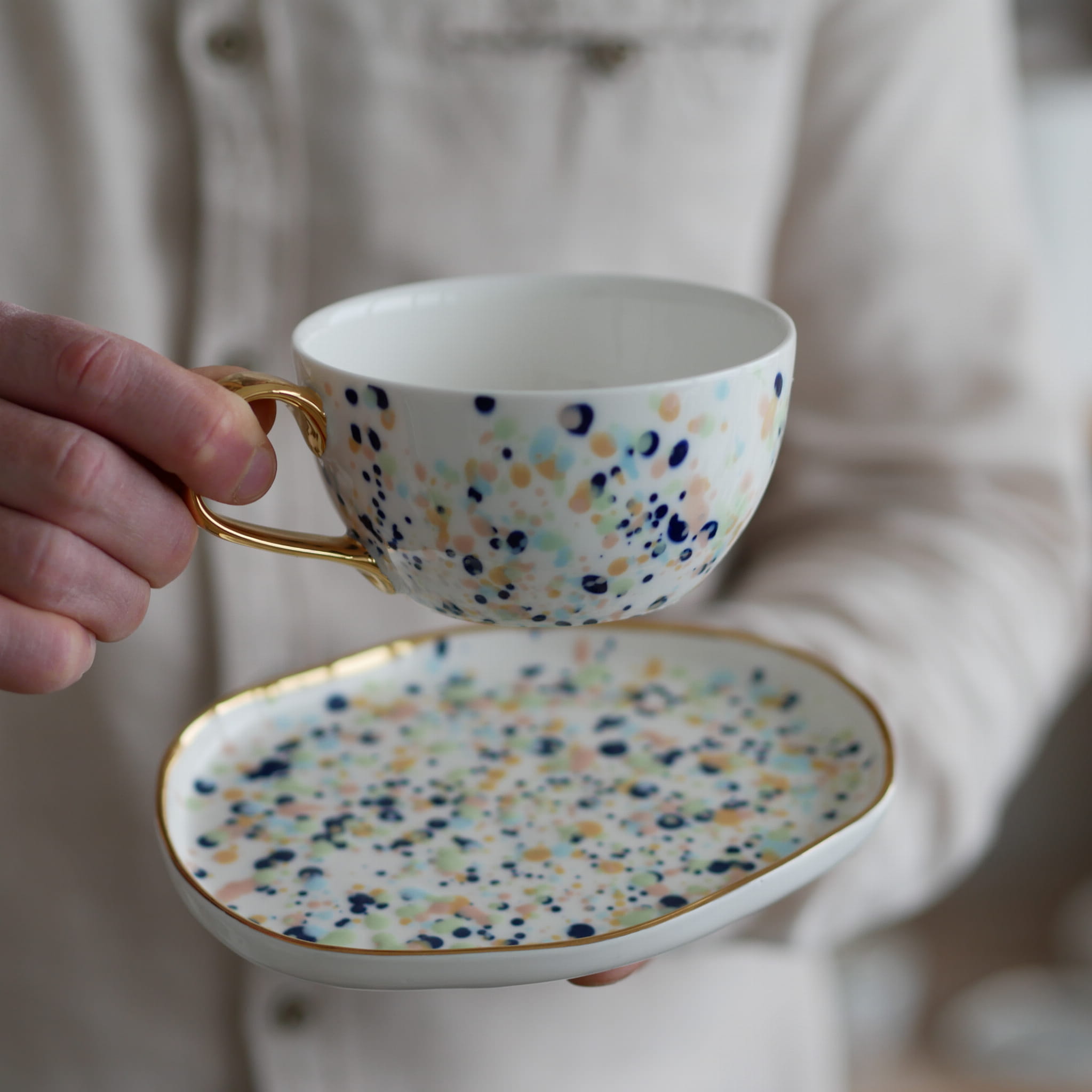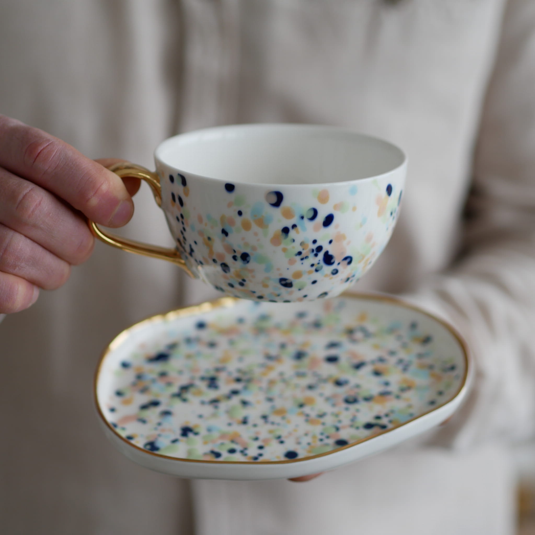 Zestaw filiżanka 300ml colorful + talerzyk 13x16,5cm (M) colorful